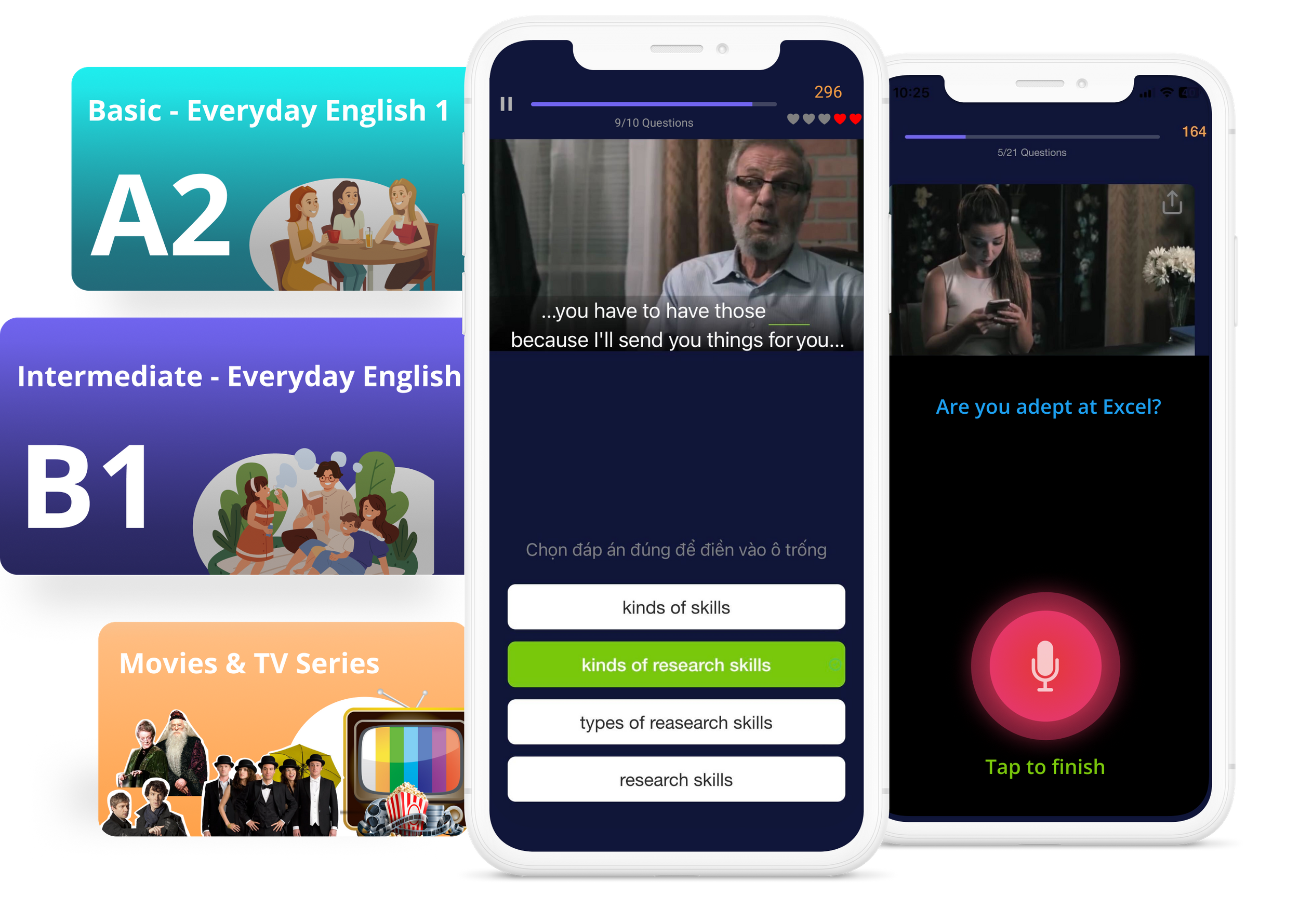 Each course consists of videos arranged according to your level and language function.