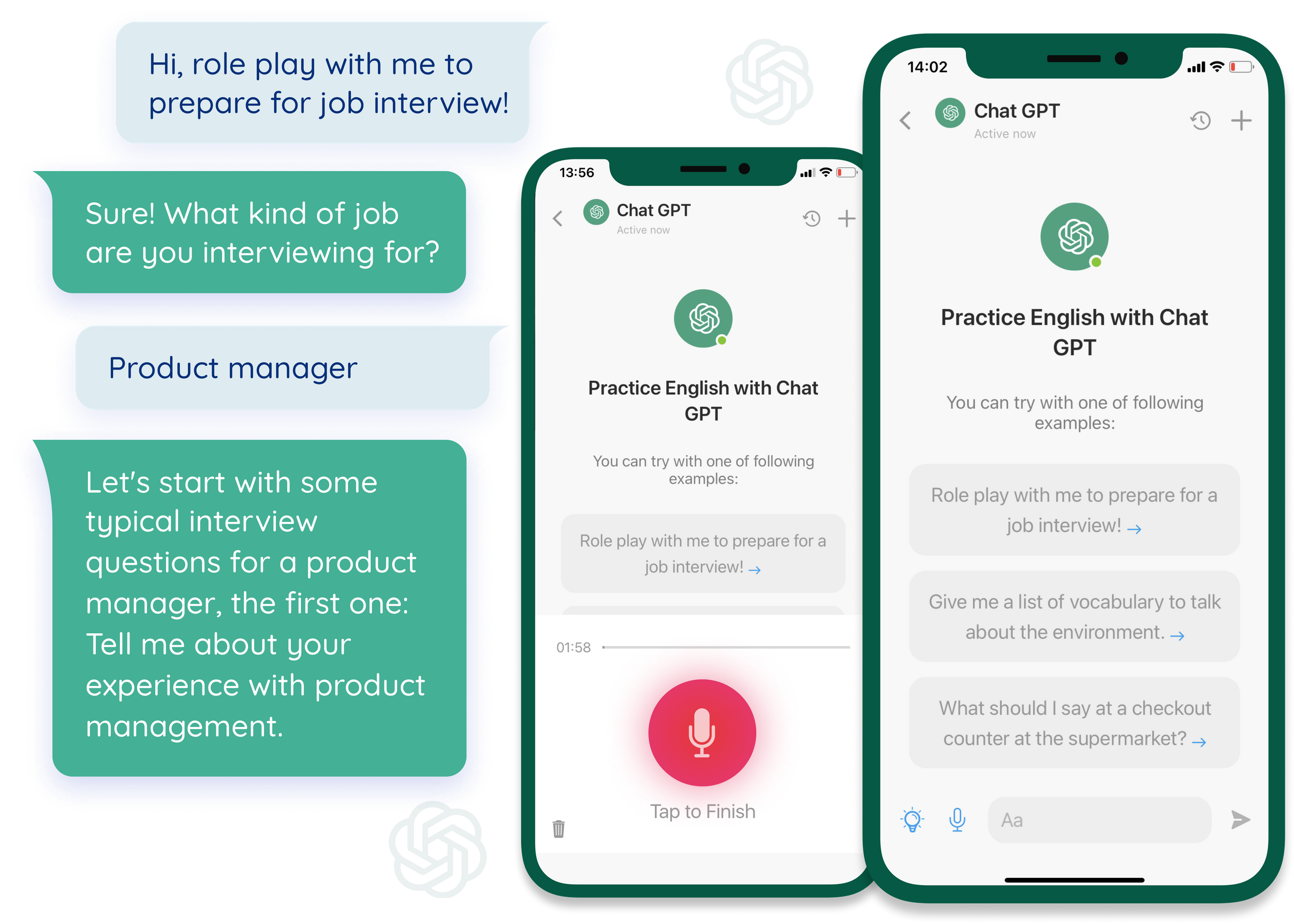 Apply the phrases and grammar you've just learned with ChatGPT to improve your listening, speaking, and vocabulary skills.