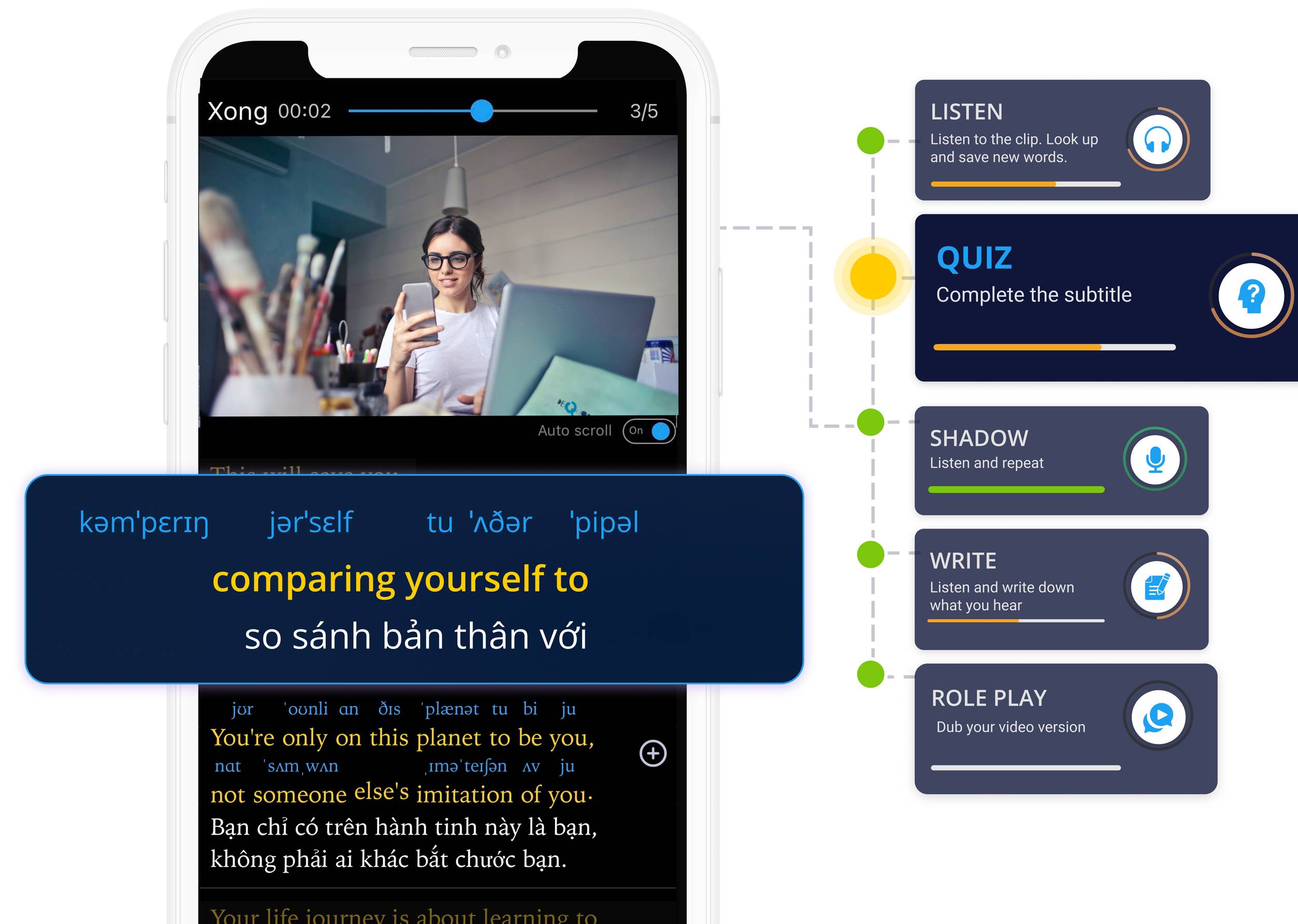 eJOY Epic will list all the most useful phrases and grammar to learn from each video.